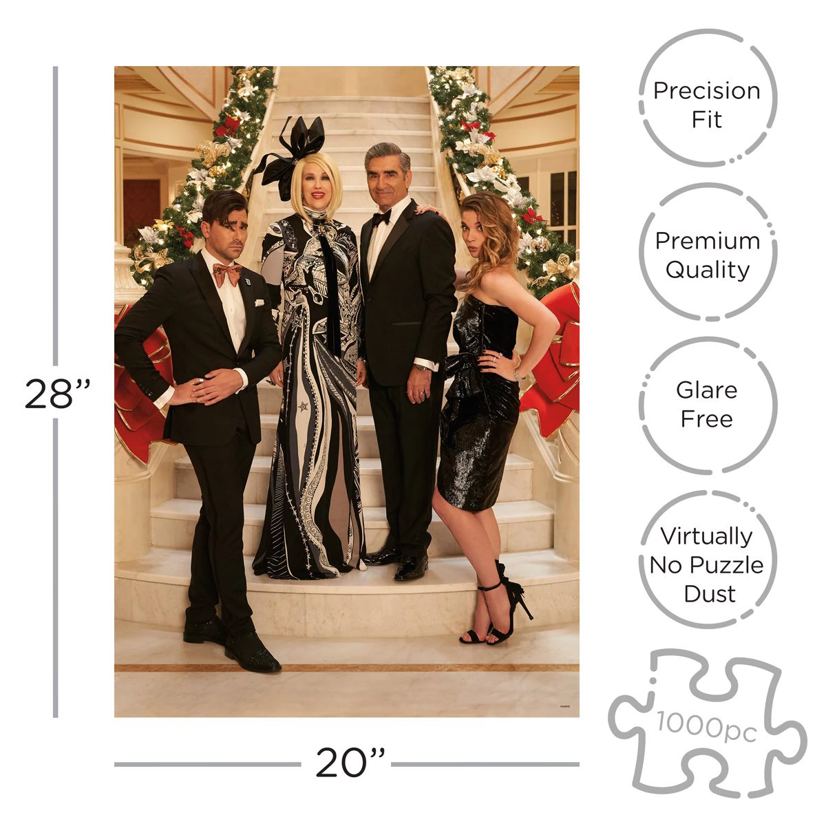 Enjoy piecing together this colorful 1000 piece puzzle featuring Schitt’s Creek! This puzzle is detailed with your favorite characters from the iconic show.