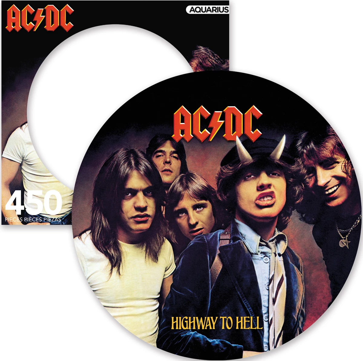 Rock out with this 450 piece jigsaw puzzle shaped like a vinyl record featuring AC/DC’s Highway to Hell album art. The completed puzzle measures 12 x 12 inches. This AC/DC puzzle is the ultimate gift for AC/DC fans of all ages. Perfect for family puzzling, game night, birthdays, and holidays