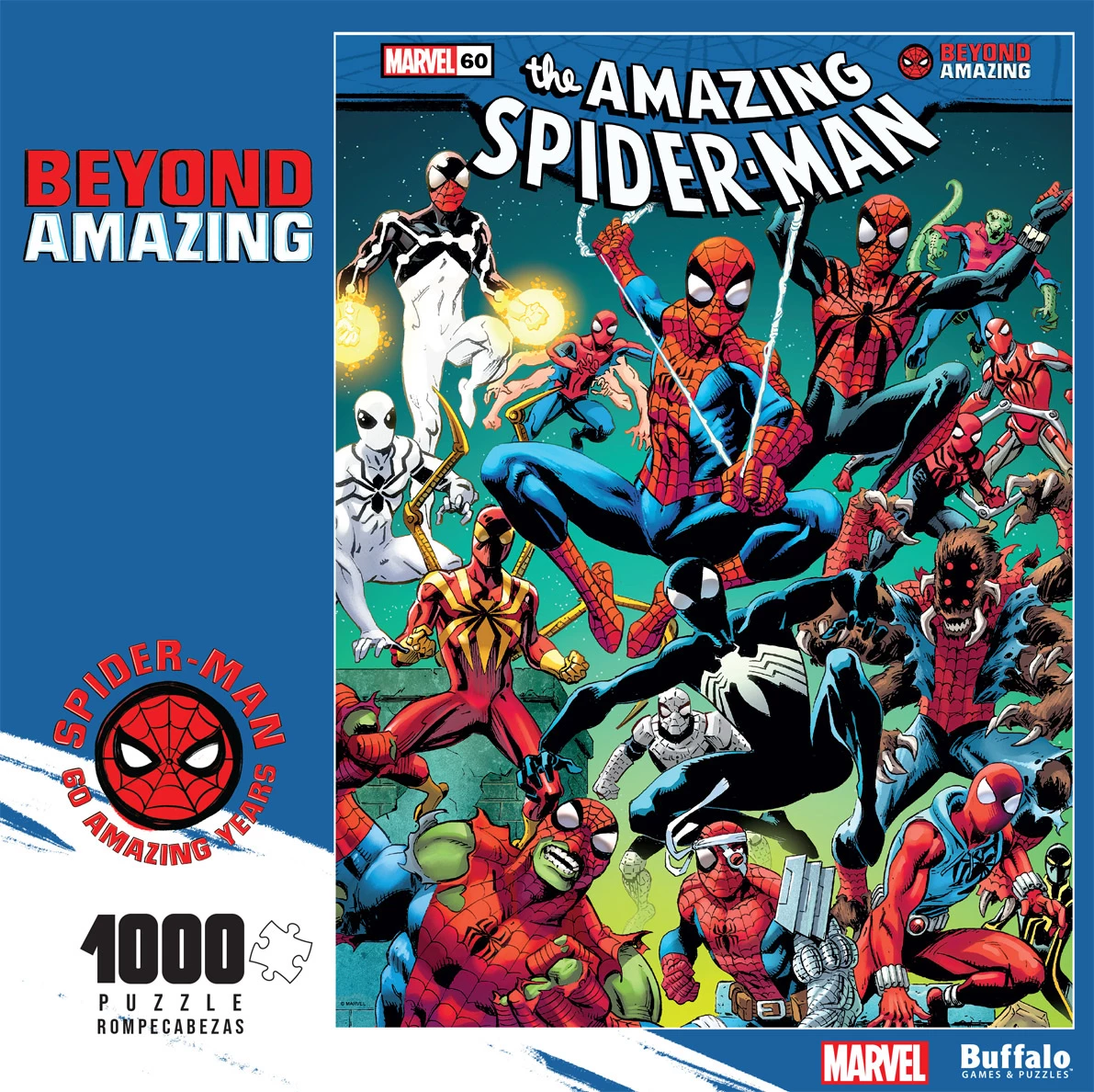 This Buffalo Games 1000-piece Marvel jigsaw puzzle celebrates 60 amazing years of Spider-Man. It features over 15 different Spider-Mans from around the Spider-verse.Every Buffalo Games jigsaw puzzle is manufactured from recycled puzzle board. A precision cutting technique guarantees that every piece will fit soundly with the company’s signature Perfect Snap™. A bonus puzzle poster is also included so that you have a handy reference of what the completed puzzle should look like while you put yours together. ©2022 MARVEL