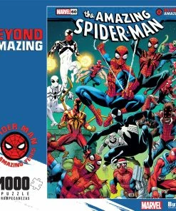 “The Clone Conspiracy is a 1500-piece Marvel jigsaw puzzle. This puzzle features various versions of Spider-Man taking on his enemy, Dr. Otto Octavius, also known as Dr. Octopus. This puzzle features different scenes of Spider-Man and Doc Ock fighting.