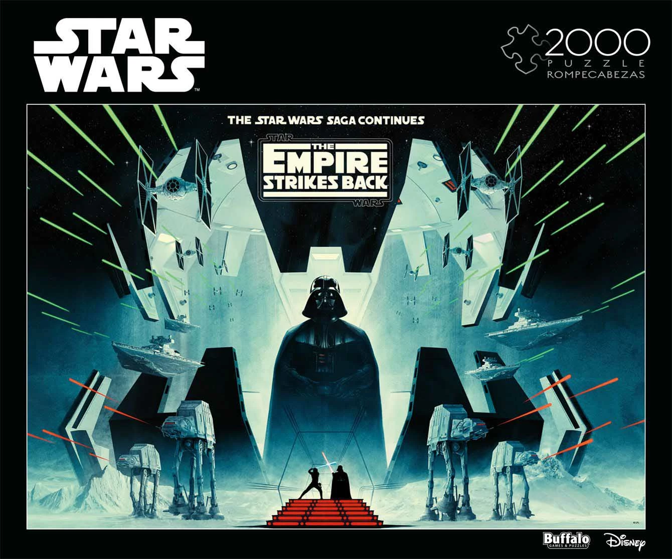 The Saga Continues is a 2000-piece Star Wars™ jigsaw puzzle featuring artwork created to commemorate the 40th anniversary of The Empire Strikes Back. Darth Vader™ stands in the center surrounded by vehicles from the Imperial fleet including TIE fighters and AT-AT walkers. Below is a depiction of the famous lightsaber battle between Luke Skywalker™ and Darth Vader™.