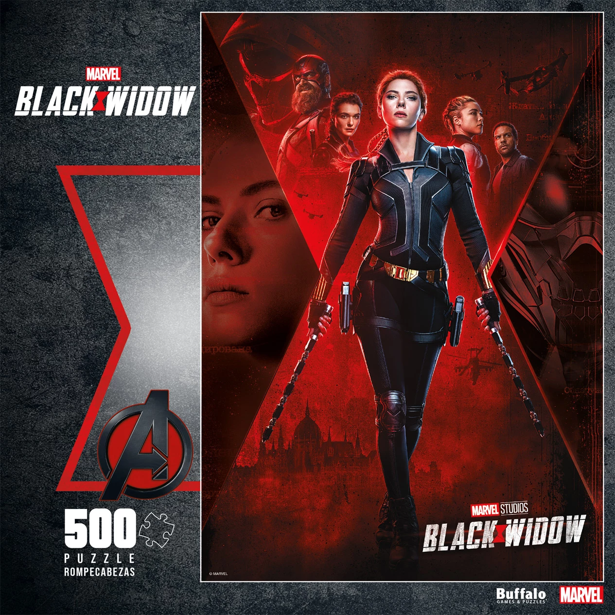 This 500-piece Marvel jigsaw puzzle titled Black Widow is based on a movie poster for the Black Widow film from Marvel Studios. This puzzle is sure to be a fan-favorite!