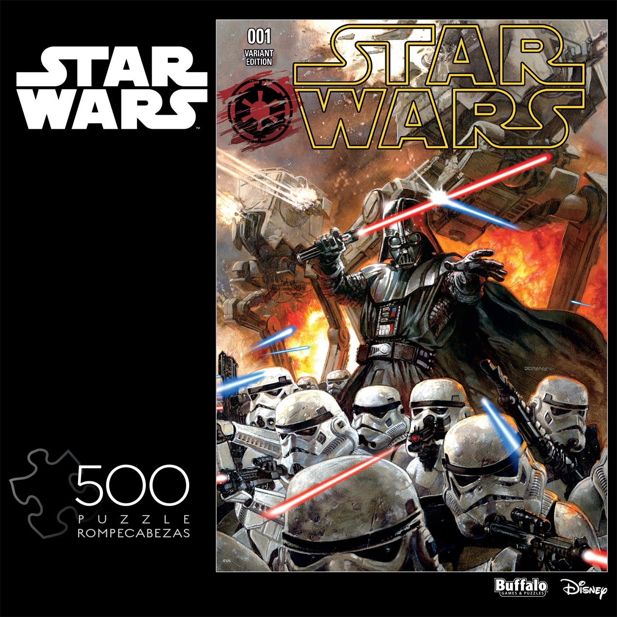Darth Vader and the Imperial Army is a Buffalo Games 500-piece jigsaw puzzle featuring Darth Vader from the Star Wars™ franchise. This puzzle features Darth Vader holding a lightsaber, standing above stormtroopers.Every Buffalo Games jigsaw puzzle is manufactured from recycled puzzle board. A precision cutting technique guarantees that every piece will fit soundly with the company’s signature Perfect Snap™. A bonus puzzle poster is also included so that you have a handy reference of what the completed puzzle should look like while you put yours together.© & TM LucasFilm Ltd. StarWars.com