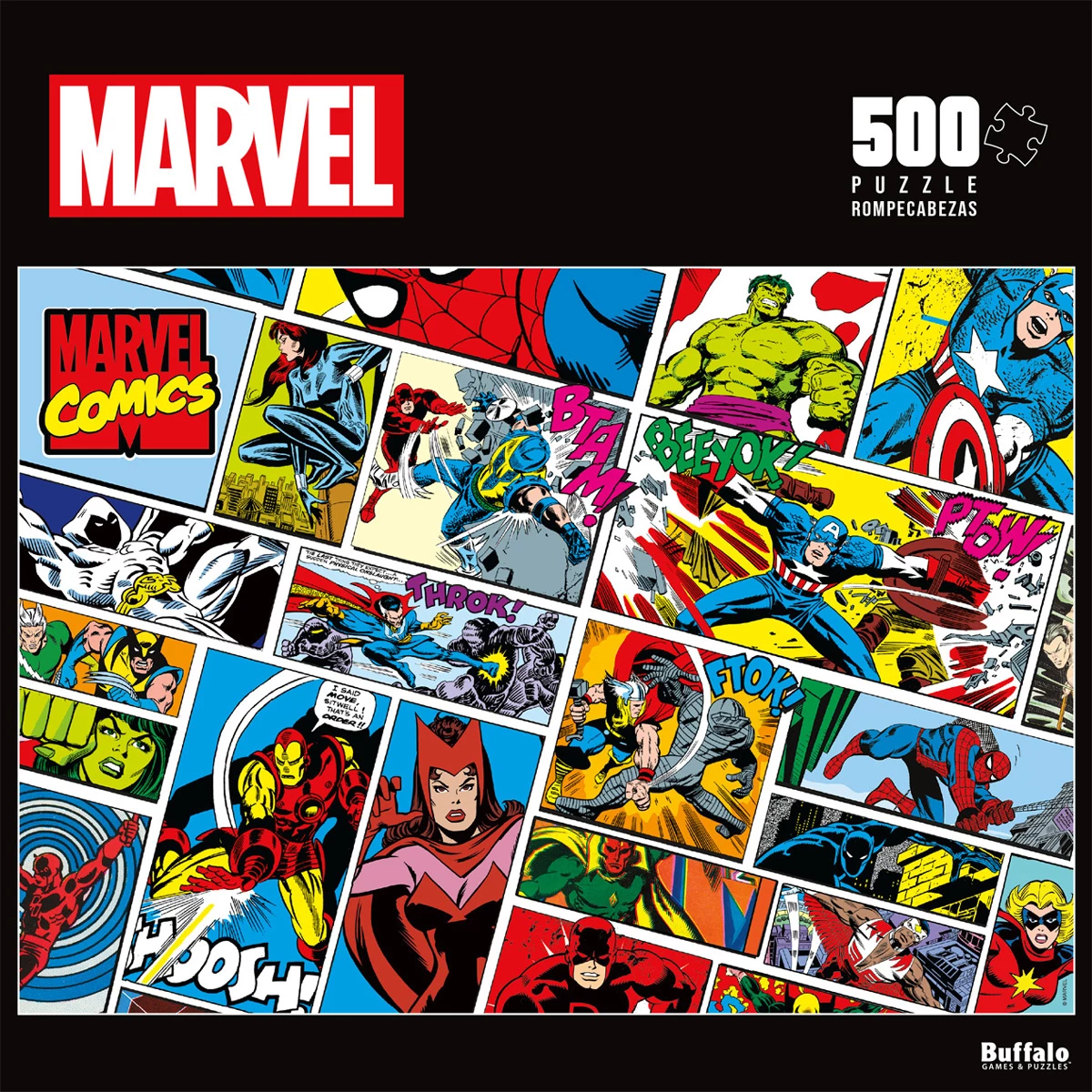 This 500-Piece jigsaw puzzle features a handful of your favorite Marvel heroes. Arranged in a comic book style collage, these Marvel heroes can be seen in striking poses. Don’t miss out on the action! BAM! POW!