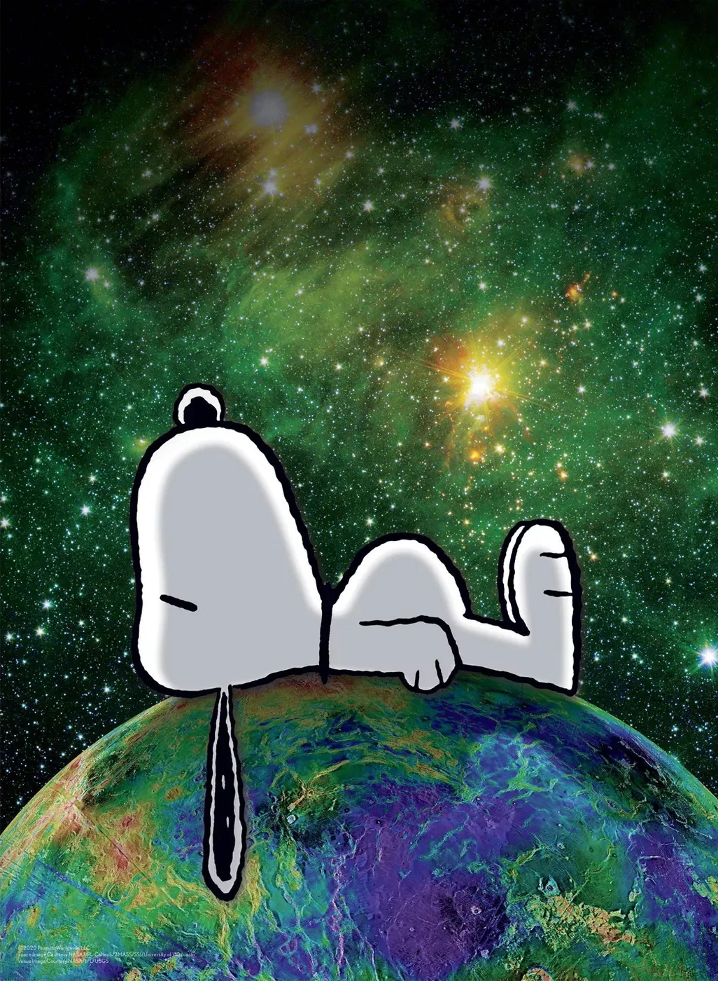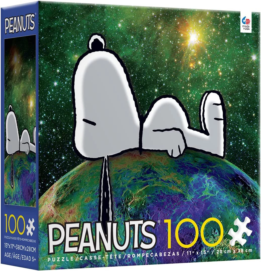 This 100 piece Ceaco Peanuts puzzle features a Snoopy in outer space laying on planet Earth. 15″ x 11″ when completed. Made in the USA.