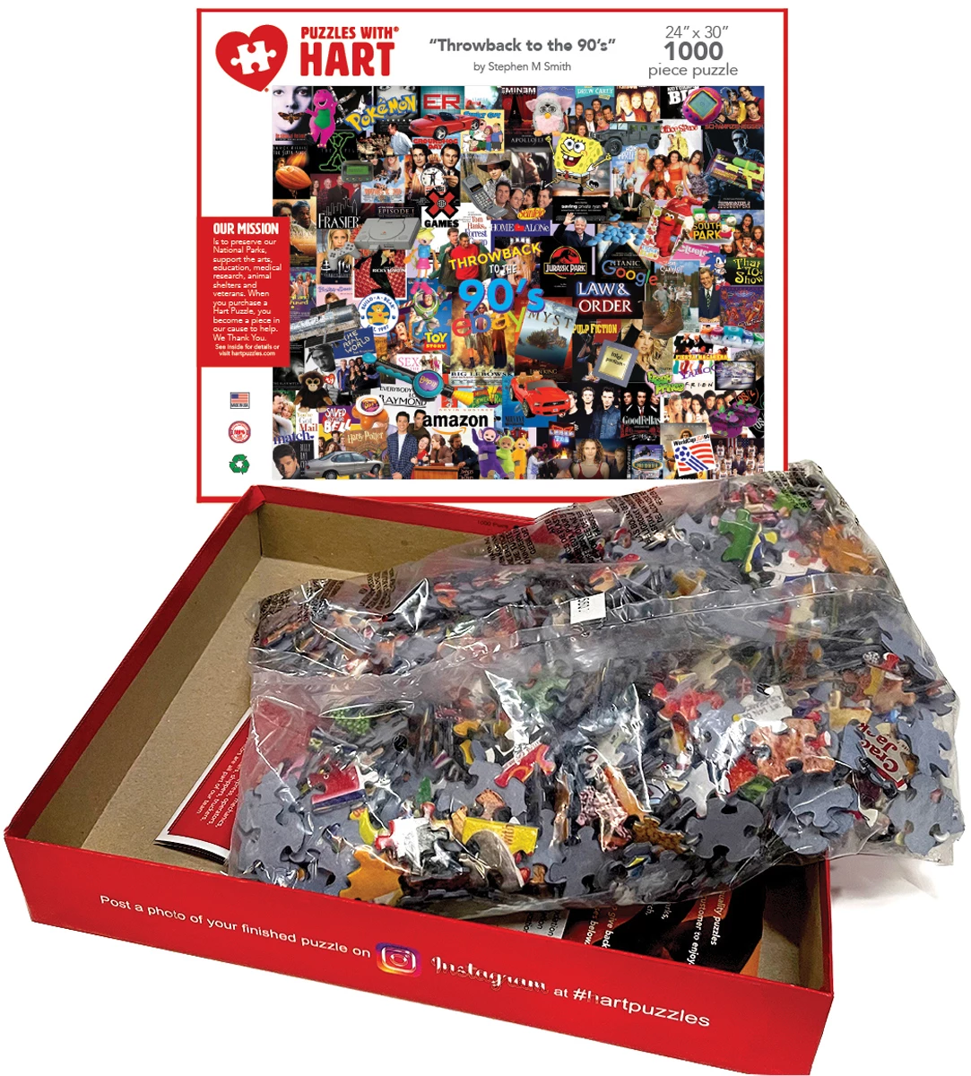 Culturally, the 1990s are characterized by the rise of multiculturalism and alternative media. We enjoyed amazing movies like βTitanicβ, βToy Storyβ and who can forget TV shows βFriendsβ, βThe X-Filesβ and βLaw and Orderβ. Look for those and many more in this 24βx 30β 1000 piece puzzle.