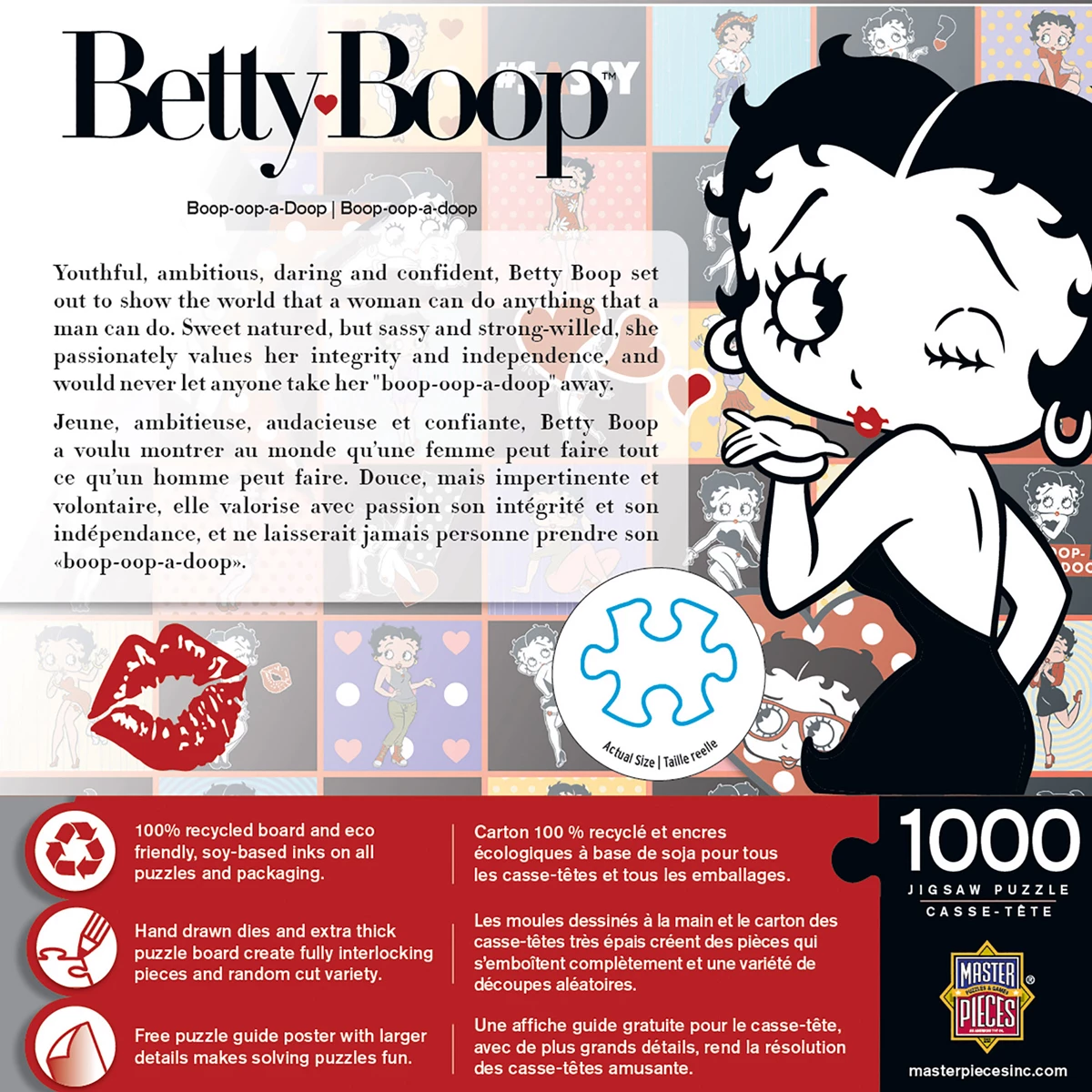These MasterPieces 19.25″ x 26.75″ 1000pc of the classic Betty Boop throughout her dynamic and trend-setting history.ย To reduce their impact on our environment, the chipboard used in these puzzles is made of recycled material.