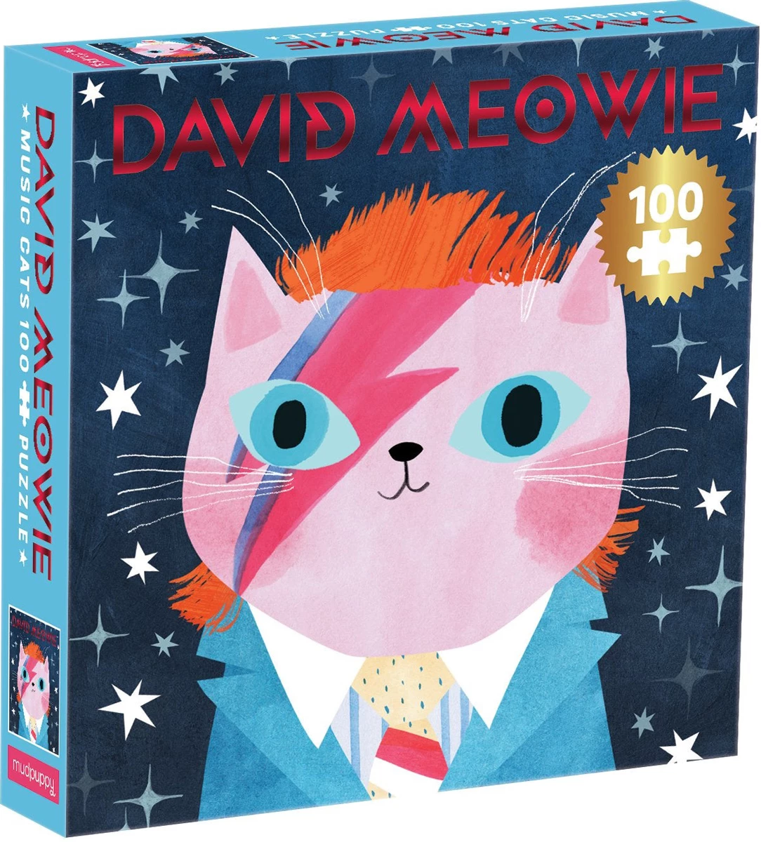 Introduce a music legend with this puzzle inspired by the iconic pop star. The David Meowie Music Cats 100 Piece Puzzle includes shiny foil embellishments on the box and puzzle and is great fun for everyone. Mudpuppy puzzles are packaged in matte-finish sturdy boxes, perfect for gifting, reuse, and storage.
