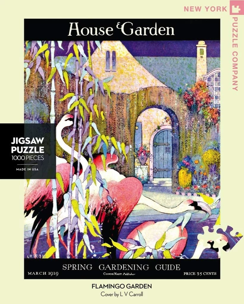 Flamingo Garden – House & Garden Cover by Artist L. V. Carroll, originally published on March 1st, 1919