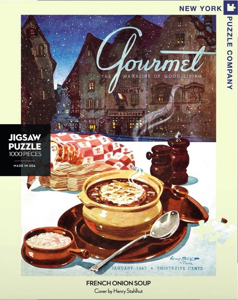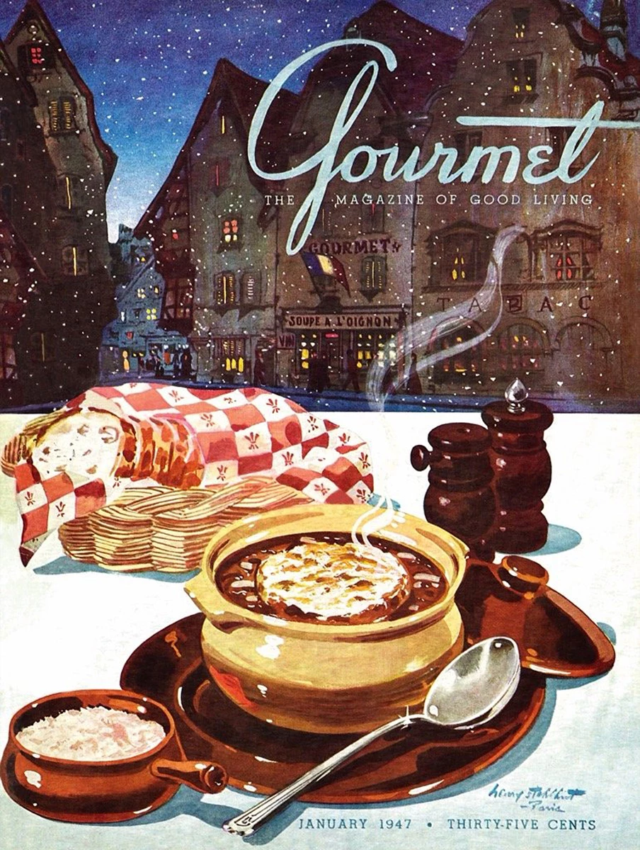 Warm up with this delicious and aromatic bowl of french onion soup! Enjoy it with the background of a quaint town filled with more gourmet food options.