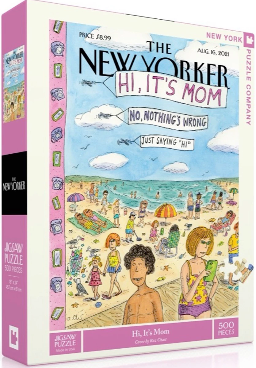 Have you checked your voicemail today? Mom may have left a message… or two! Airplanes fly over a crowded beach in this New Yorker Magazine cover with a few messages from Mom.