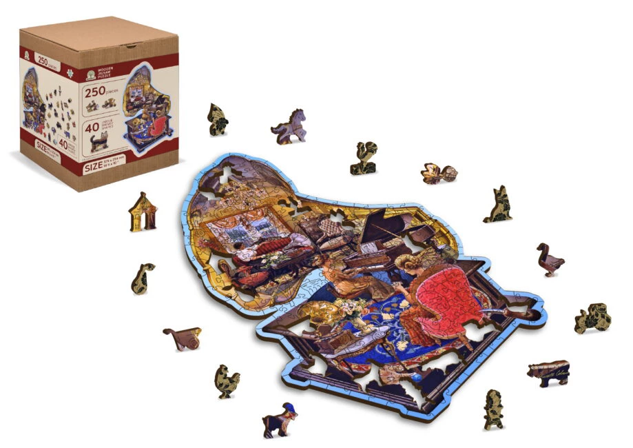 - Wooden City Cozy Gramophone L puzzles offer a challenging and unique build, a fun playful experience, and a decorative show piece for years to come.