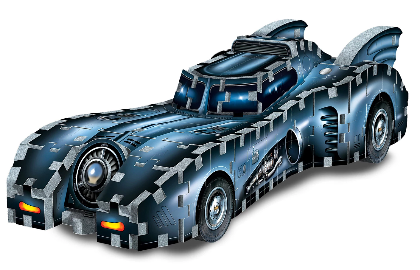 This 255-piece 3D jigsaw puzzle is a reproduction of the Batmobile as seen in Tim Burtonโs Batman (1989) and Batman Returns (1992) movies. Hurry and assemble it before the next Batsignal hits the cloudy sky of Gotham!